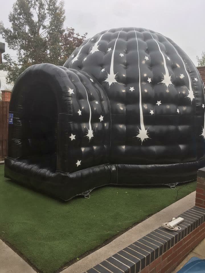Our Amazing disco dome is the latest addition to Belvoir Bouncy castles, giving you a bouncy area with a built in speaker and two disco lights. This Inflatable really is one of the best most resent innovations to the inflatable industry. These inflatables are very popular for all ages especially from teenagers through to adults.