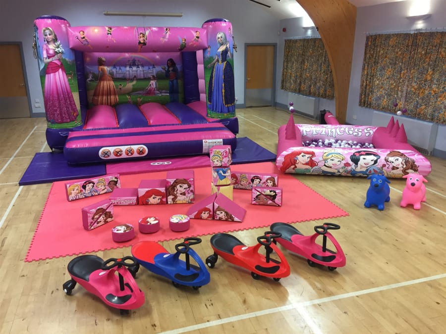 Ideal for your little princess and all her friends, the package consists of our 12ft x 12ft Princess Bouncy Castle plus our beautiful 17 piece soft play set and matching 7ft x 7ft inflatable ball pool, which comes complete with 1,000 pretty pearl and purple balls. And you also get 4 ride-on Didi Cars and 2 Happy Hoppers, which will help to keep everyone happy!