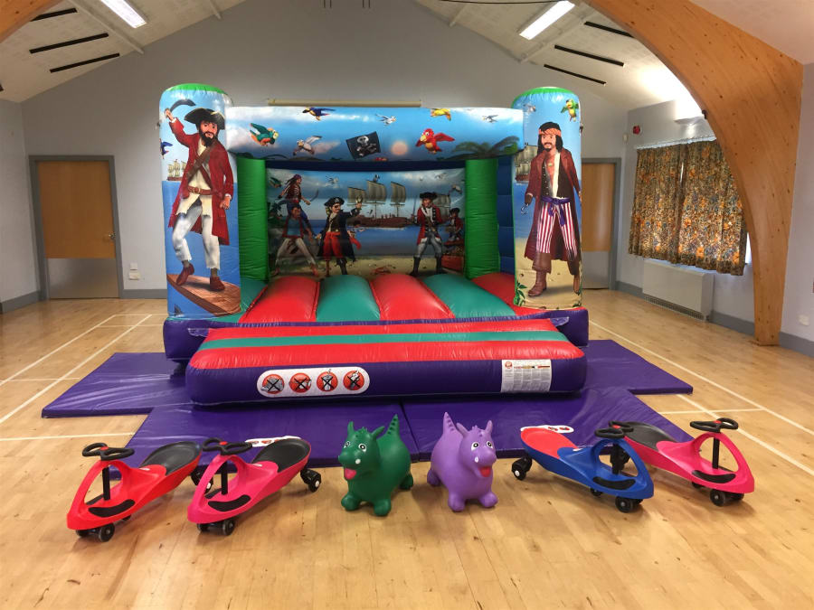 This party package consists of a 12ft x 12ft Pirate Bouncy Castle, which is suitable for children up to 11 years of age, plus 4 Didi Cars and 2 Happy Hoppers.