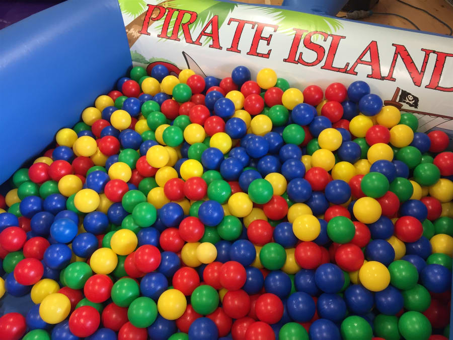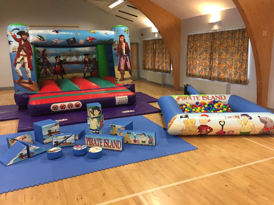 This party package is made up of our rather cool 12ft x 12ft Pirate Bouncy Castle, plus our matching Pirate themed 17 piece soft play set and 7ft x 7ft inflatable ball pool, which comes complete with 1,000 multi-coloured balls.