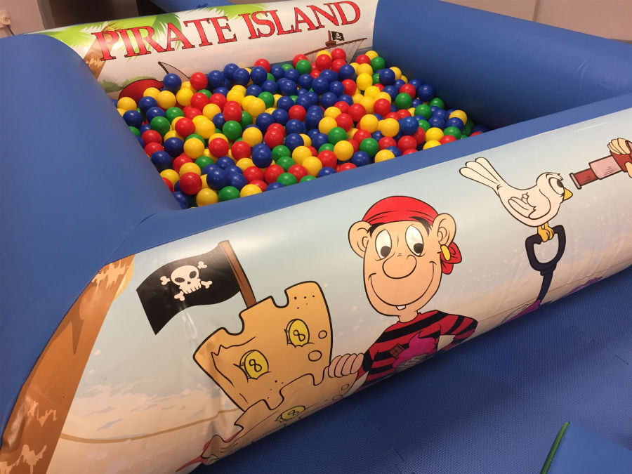 Our Pirate Bounce & Slide Party Package 2 is made up of our suitably cool 12ft x 18ft pirate themed bouncy castle combo that comes complete with a built-in slide with easy-to-climb steps, plus our matching 17 piece soft play set and 7ft x 7ft pirate themed inflatable ball pool, which is filled with approx. 1,000 brightly coloured balls.