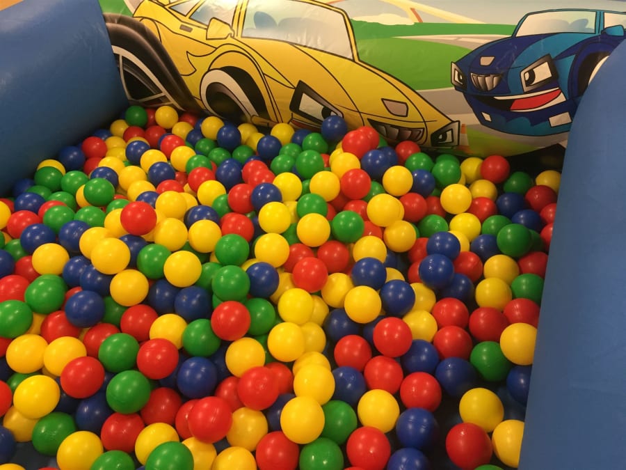 The large matching inflatable ball pool comes complete with 6 built-in ball jugglers and approx. 1,000 balls. With this combination, children just can’t fail to have fun! And if this isn't enough, just add a set of ride-on Minicars or Didicars at the point of booking, for the ultimate racing cars themed soft play party!